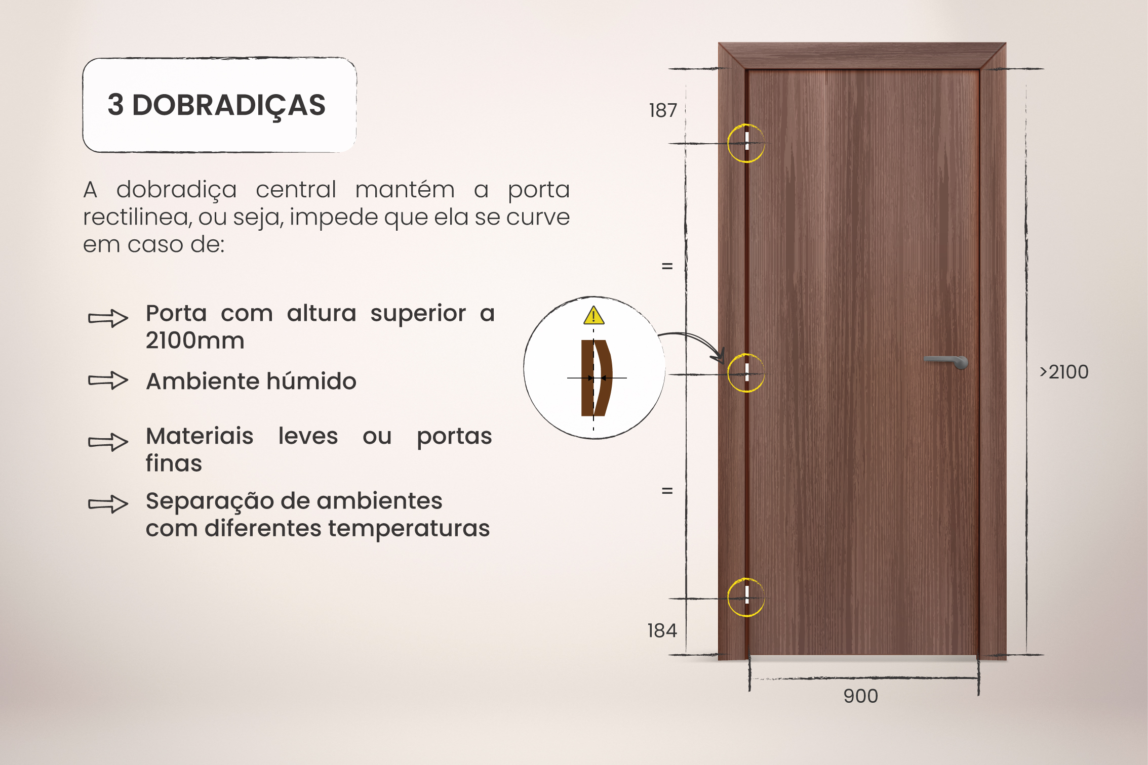 Quantidade de dobradiças a instalar: não sobra espaço para erros.