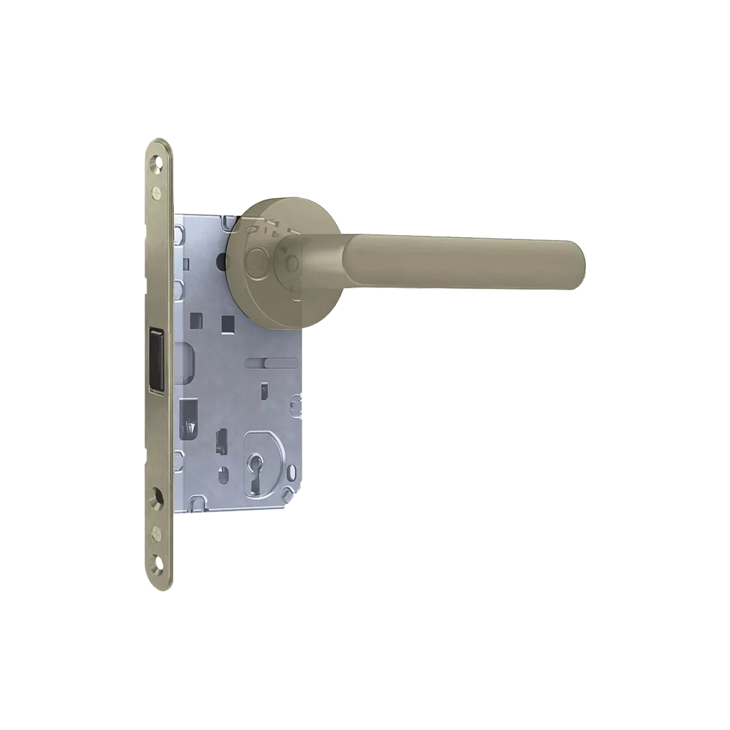 É um modelo de fechadura silenciosa, elegante e com o plus de ser amortecida. Graças ao sistema que tem implementado, no momento do fecho o puxador é amortecido.