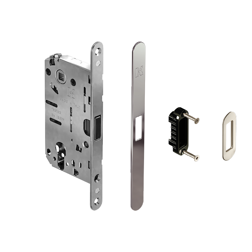 Possibilita a aplicação de uma frente magnética de embelezamento para ocultar os parafusos visíveis na fechadura.