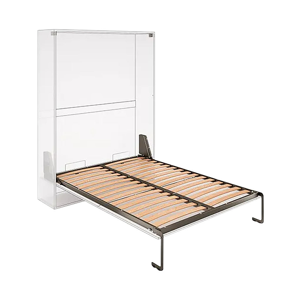 Cama vertical rebatível para aplicação em armários com profundidade mínima de 430mm e altura de colchão máxima de 230mm.