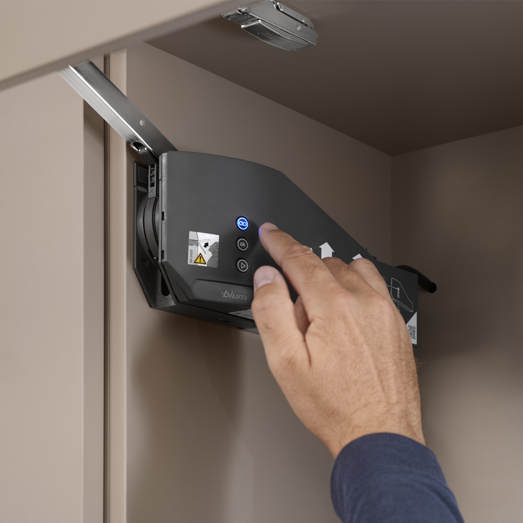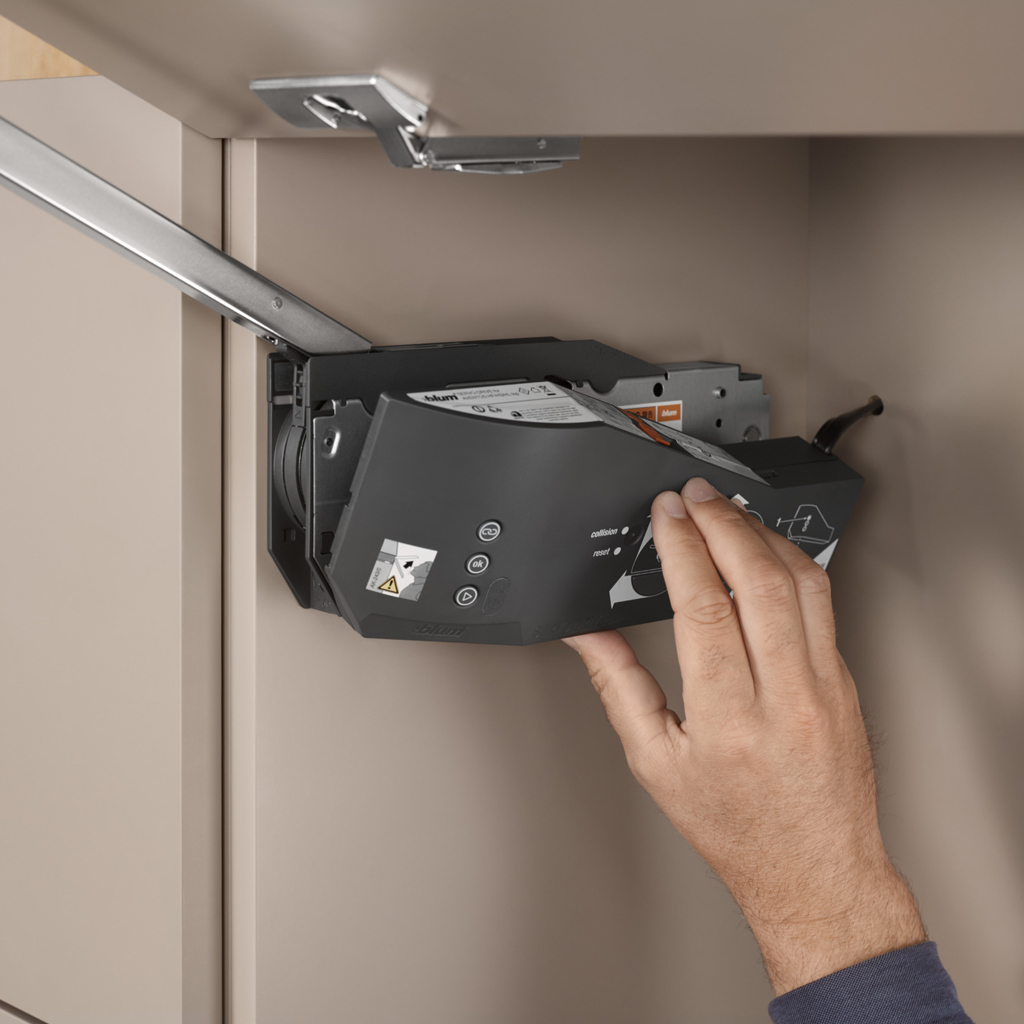 Sistema elétrico de auxílio de abertura SERVO-DRIVE, para sistemas de de portas de elevação Blum AVENTOS.