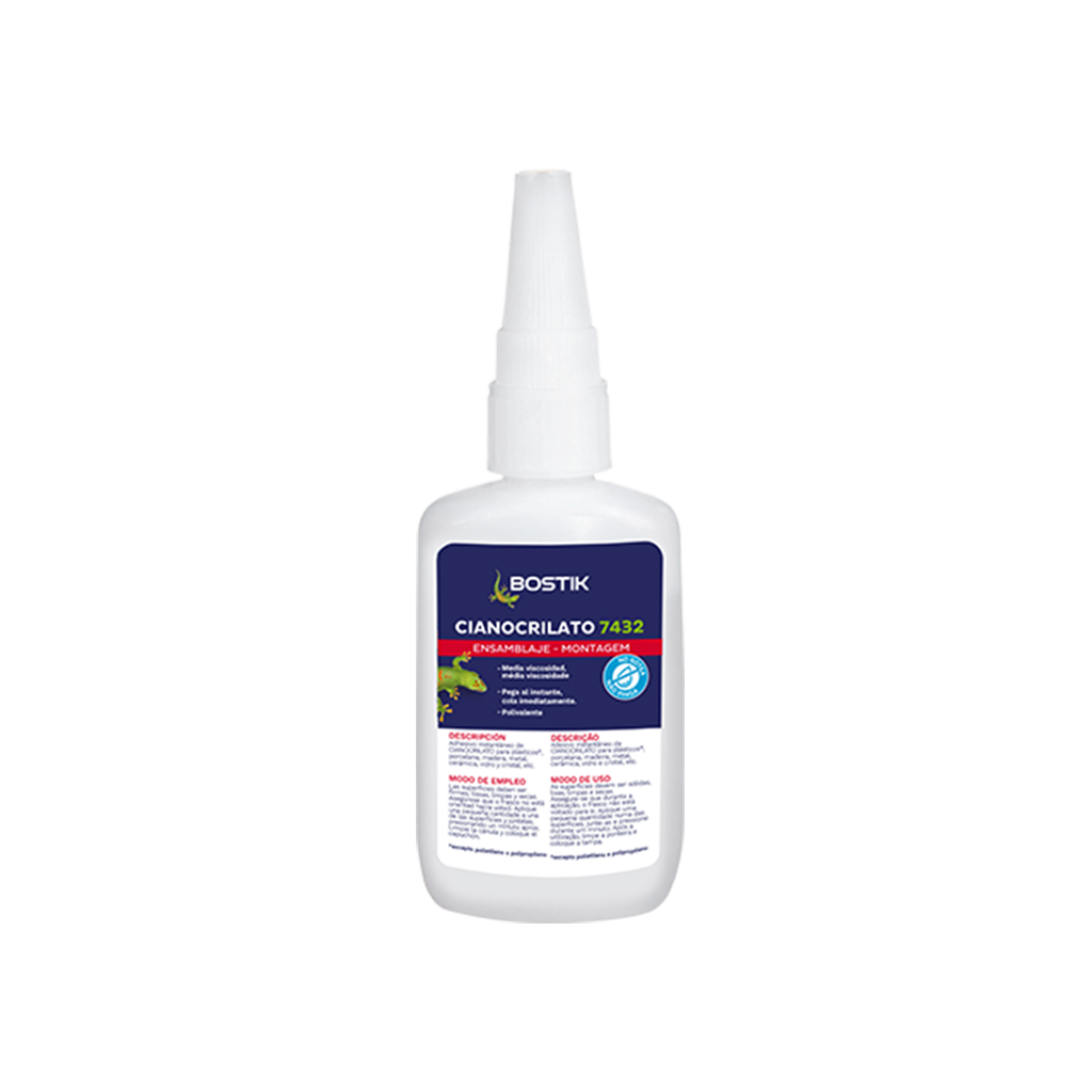 Adesivo instantâneo de cianoacrilato para uniões rápidas e resistentes sobre borrachas, plásticos rígidos, metais, porcelana, etc.