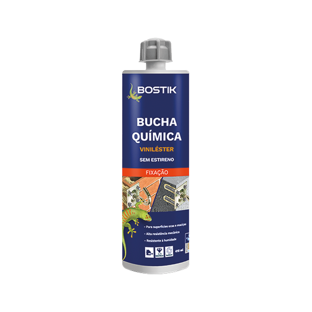 Aplicação com pistola para químicos (300ml) ou pistola para bucha química (410ml).