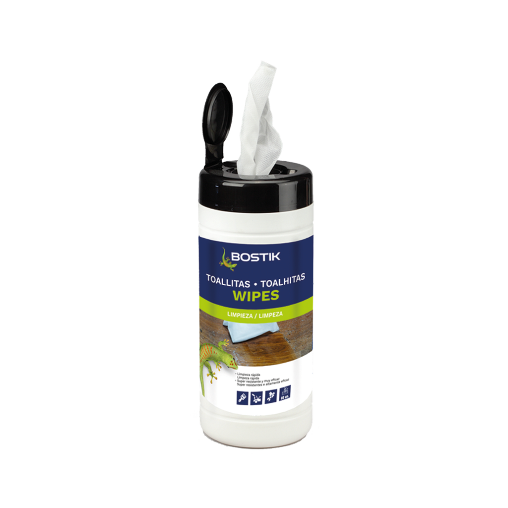 Toalhetes para limpeza de mãos, ferramentas e superfícies de trabalho contaminadas com diferentes produtos químicos.