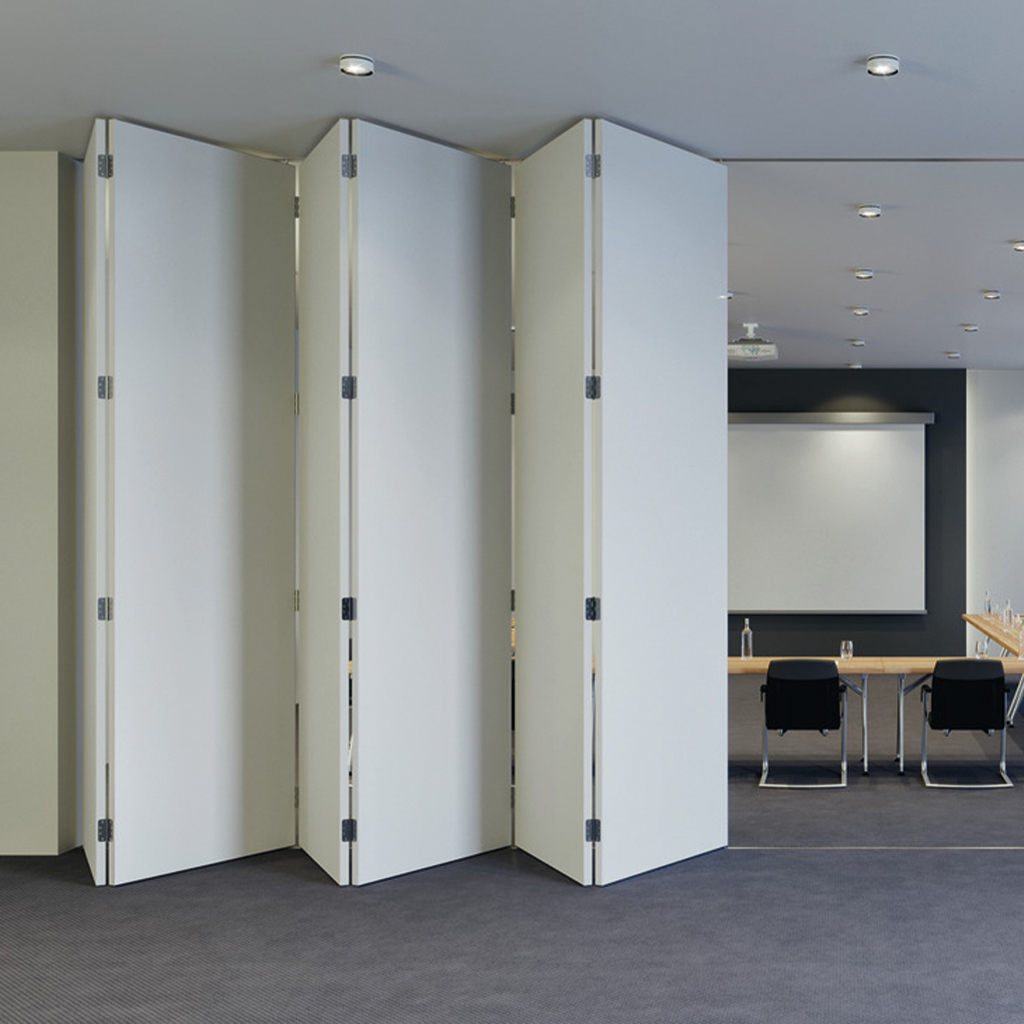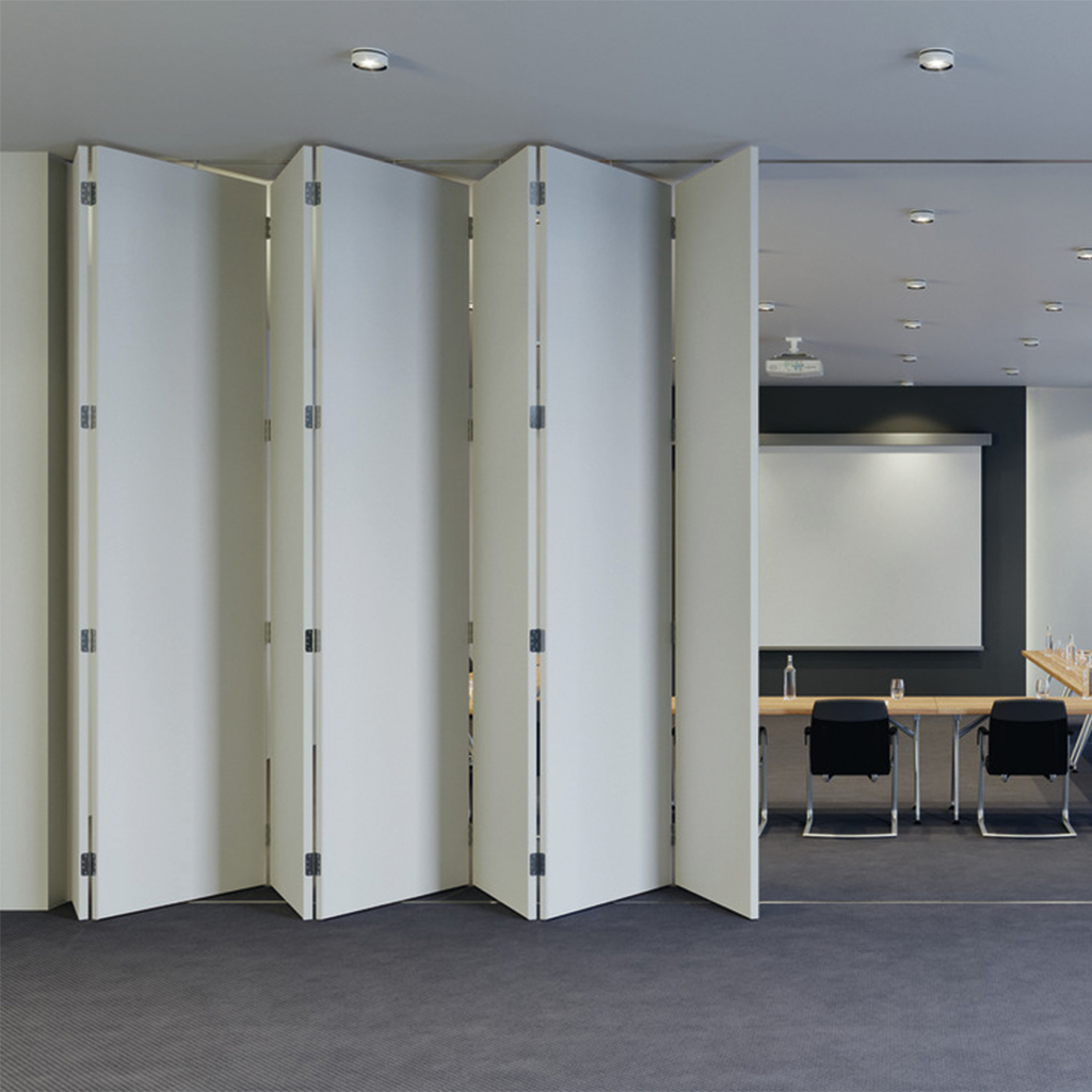 O sistema W-FOLD32 100 T da HAFELE é uma solução versátil para portas interiores de correr em fole, com um peso máximo de 100kg por cada porta.